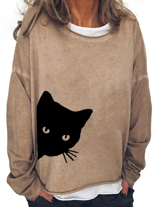 sweatshirts,cat print casual loose sweatshirt