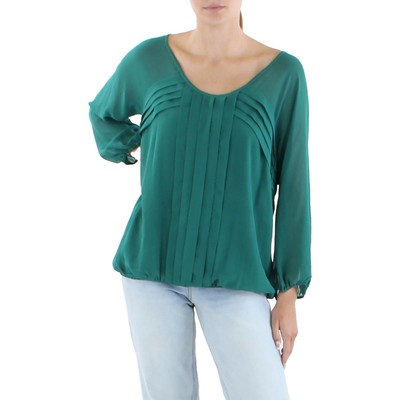 CeCe Женская зеленая плиссированная повседневная блузка из крепа BHFO 7639, Emerald