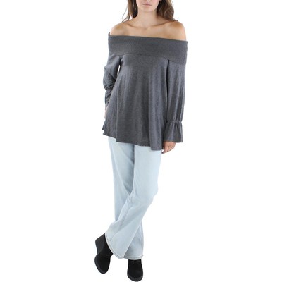 CeCe Женский серый вязаный топ с открытыми плечами, пуловер, рубашка-свитер BHFO 8622, Medium heather grey