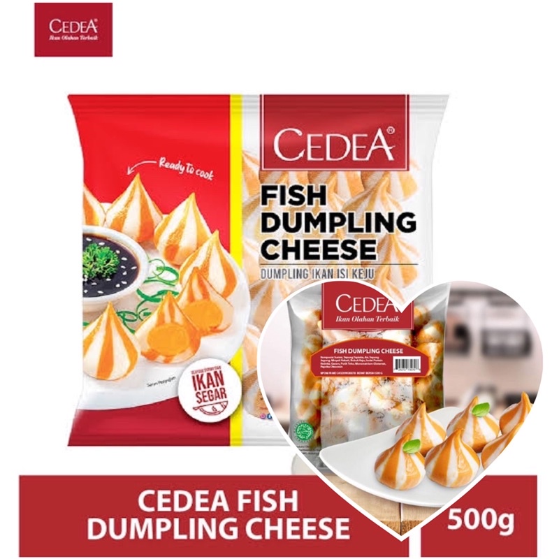Cedea Fish Dumpling Cheese adalah olahan dumpling yang terbuat dari ikan dengan isian saos keju di dalamnya. Bisa disajikan dengan cara digoreng maupun direbus selama 5-7 menit.