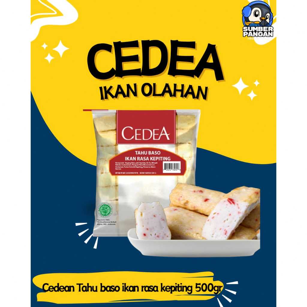 Cedea Tahu Bakso Kepiting adalah produk makanan olahan yang terbuat dari tahu dan bakso ikan, dengan rasa kepiting. Produk ini tersedia dalam kemasan 500 gram dan memiliki sertifikasi halal dari MUI serta terdaftar di BPOM, menjamin keamanan dan kehalalannya. Cedea Tahu Bakso Kepiting bisa diolah dengan berbagai cara, seperti digoreng, direbus, dikukus, atau dipanggang.