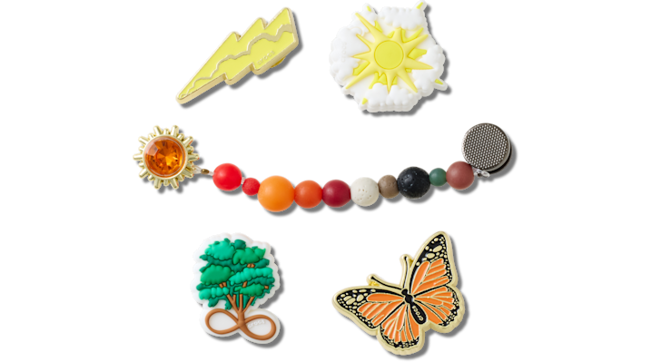 Celebrate Young Changemakers Stand with the next generation of disruptors and dreamers. This season’s Jibbitz™ for Good 5-pack was created in collaboration with RIVET, a nonprofit powering youth-led movements around the world. Each charm represents what changemaking looks like to RIVET leaders. Personalize with purpose and join us in helping 3 million young people build confidence, access opportunities, and unlock potential. Pop some personality into your shoes with these Celebrate Changemaker 5 Pack Jibbitz™ charms. They’re the perfect addition to your favorite pairs of clogs, slides, and more.Not a toy. Not intended for children under 3 years of age.