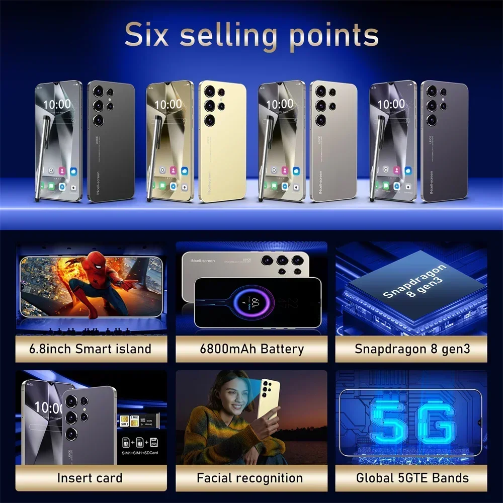 Cellphones S24 Ultra Original Smartphone 6.8 HD 4G 5G Android 14 Cell Phone 108MP Dual Sim Global Version Smart Mobile Phones