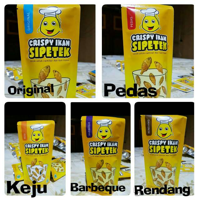 Snack yang terbuat dari ikan utuh dan crispy siap memenuhi kebutuhan gizi.Memiliki 5 varian rasa untuk selera yang berbeda beda original,baberque,keju,rendang,pedas.Selain sebagai cemilan juga bisa sebagai lauk makanan.