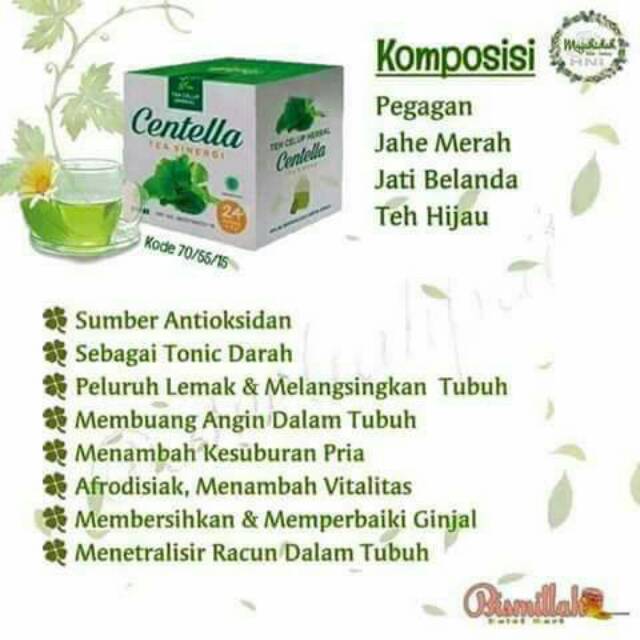 Paduan sinergi pegagan, jati belanda, jahe dan teh hijau yang dijadikan Teh yang di seleksi dari bahan baku alami yang terbaik dan pilihan. Sehingga menghasilkan rasa dengan kesegaran yang khas di olah terstandar untuk jenis minuman teh.