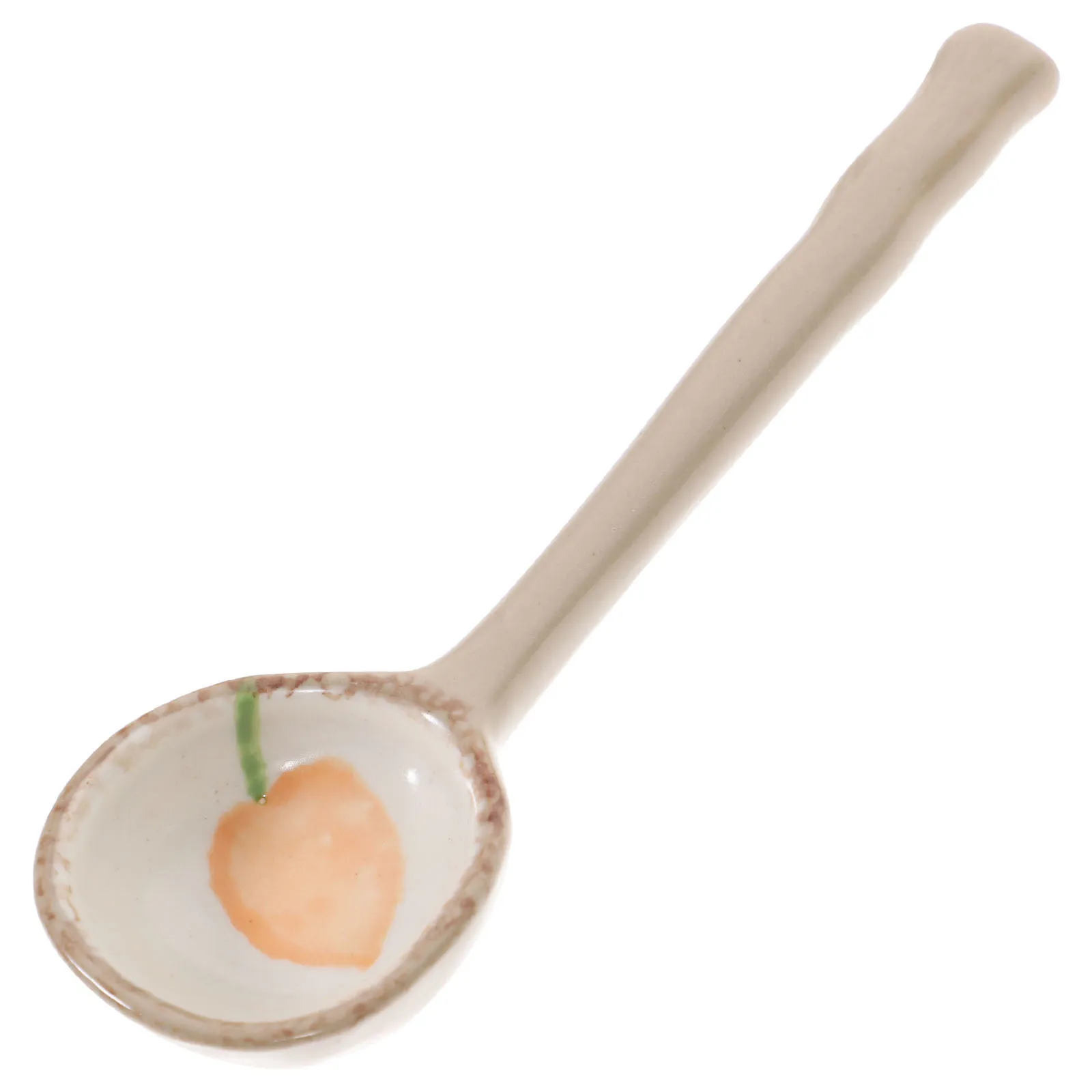 Ceramic Soup Spoon Cute Design Anti-Scalding Handle Practical Reusable Adorable Small Spoon for and Kitchen Tableware
