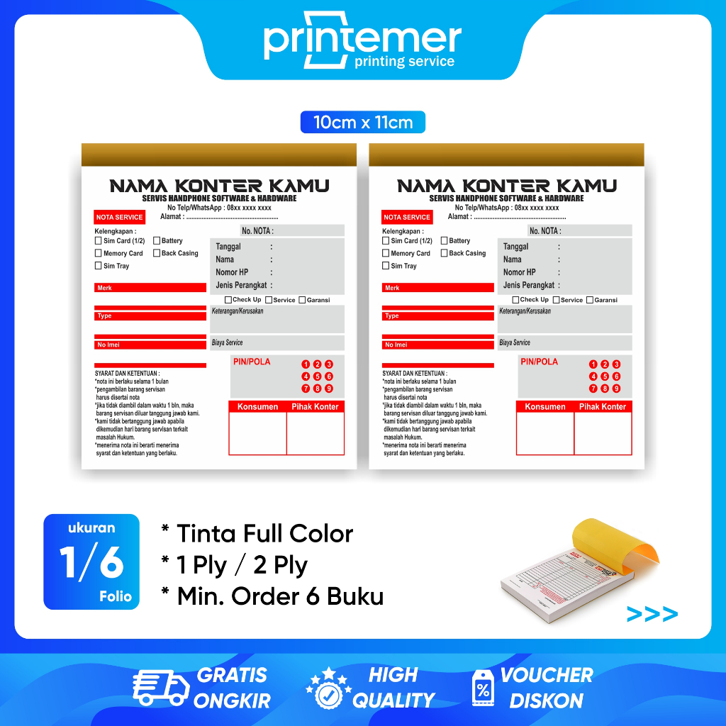 Cetak Custom Nota Servis Handphone Mini 2 Ply