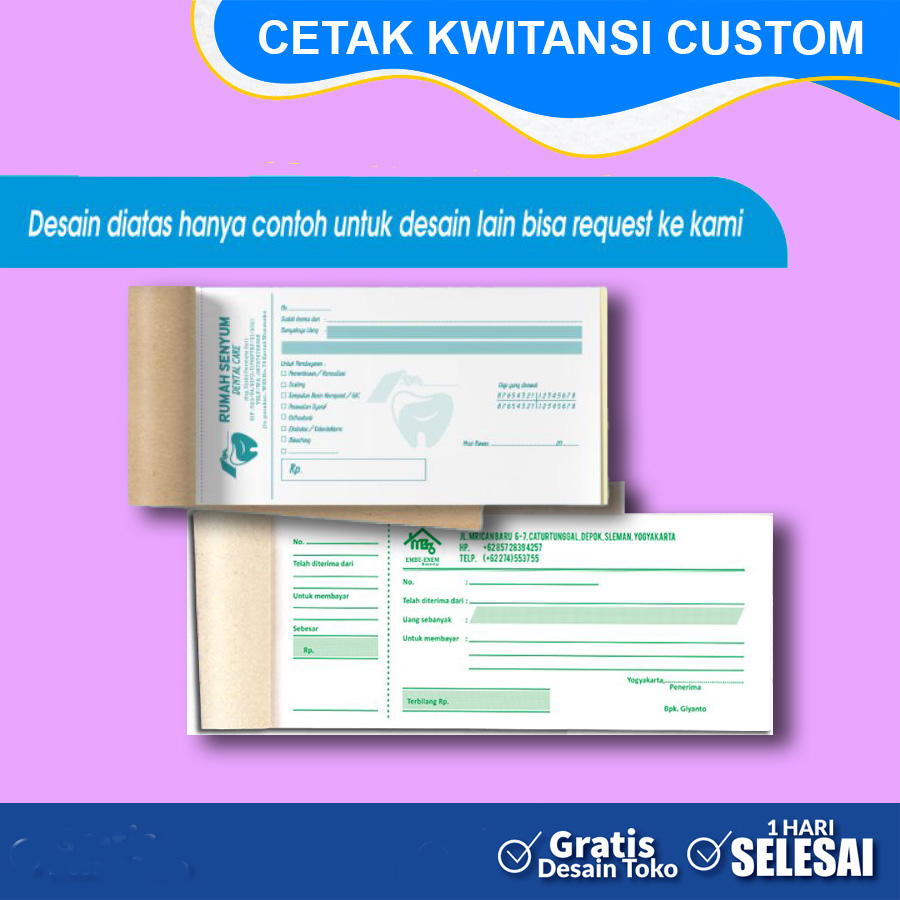 Cetak Kwitansi 1 RIM Custom - 1/3 A4/F4 1 PLY / 2 PLY PORTRAIT/LANDSCAPE
