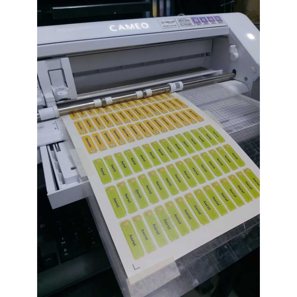 Bisa custom design untuk label nama buku, kemasan, label alat-alat tulis, dll.