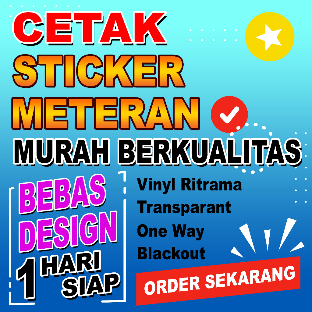 Cetak Sticker Custom Meteran Murah Cepat Siap | Print Sticker Ritrama / Transparant / One Way / Blockout