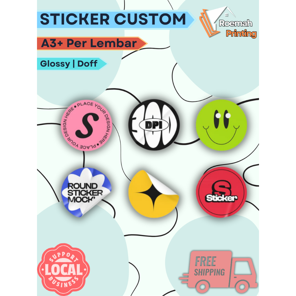 - Jumlah stiker per lembar A3+ bergantung pada ukuran desain Anda, atau konsultasikan langsung dengan admin jika ukuran Anda tidak tercantum.