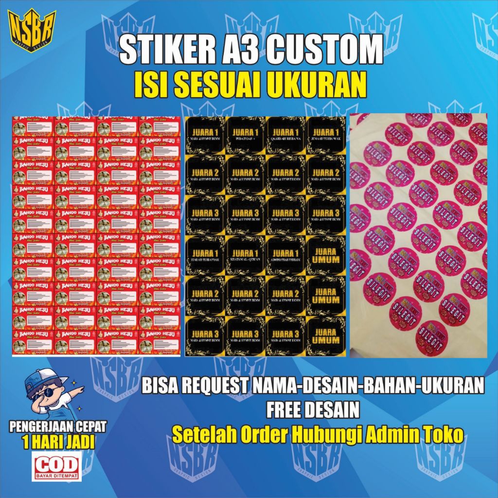 Cetak Stiker Custom Bebas Request-Ukuran Fres Desain