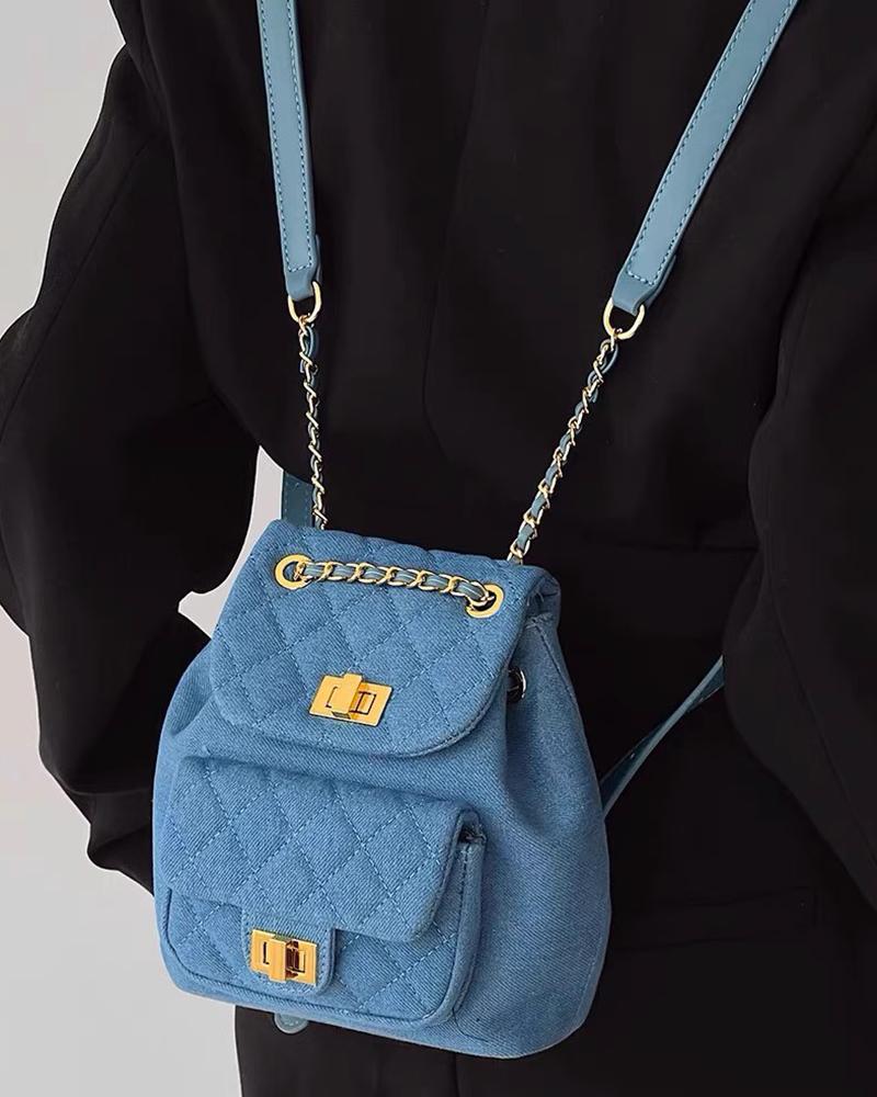 Chain Decor Pocket Design Canvas Backpack, Blue