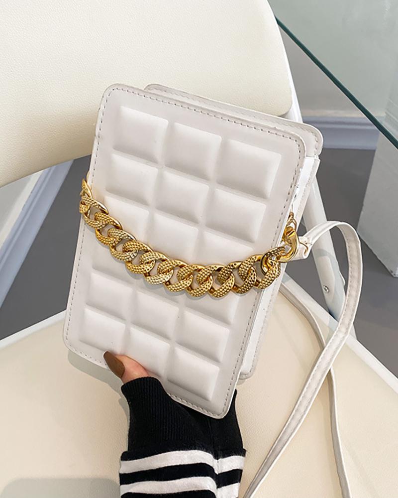 Chain Decor Square Crossbody Bag, White