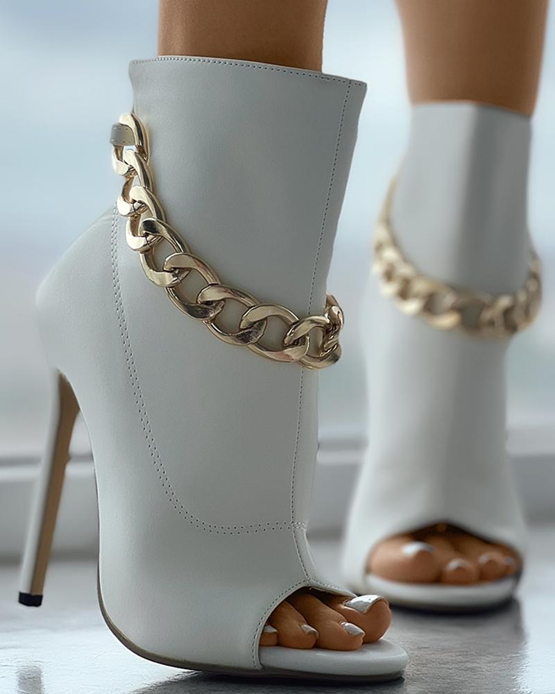 Chain Decor Zipper Design Boots, White