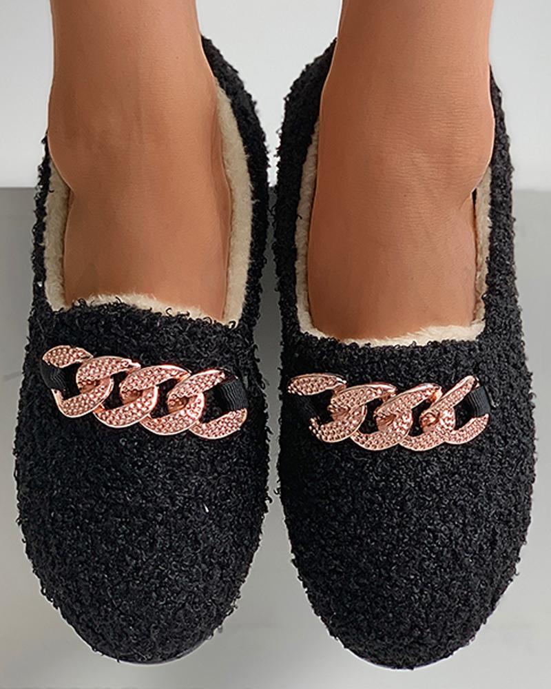 Chain Pattern Decor Fluffy Shoes, Black