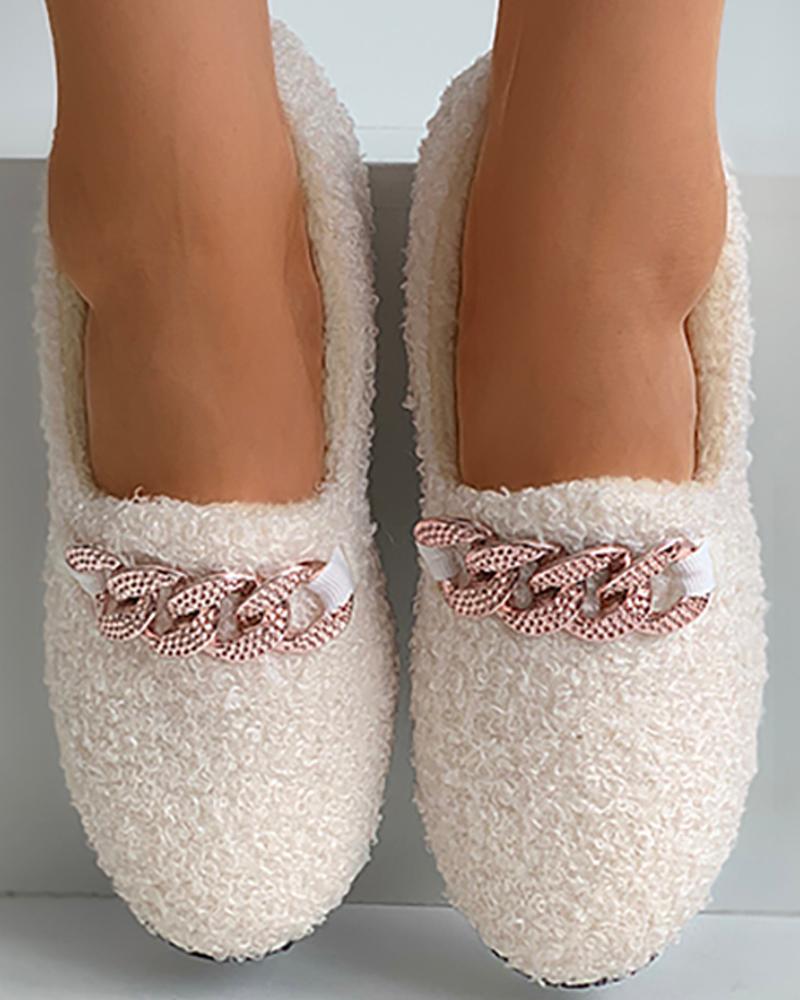 Chain Pattern Decor Fluffy Shoes, White