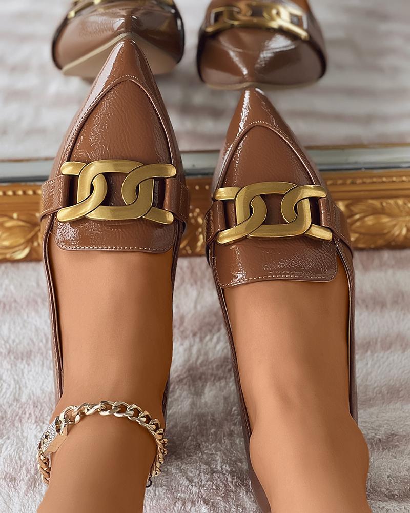 Chain Pattern Decor Pointed Toe Slip On Loafers, Brown