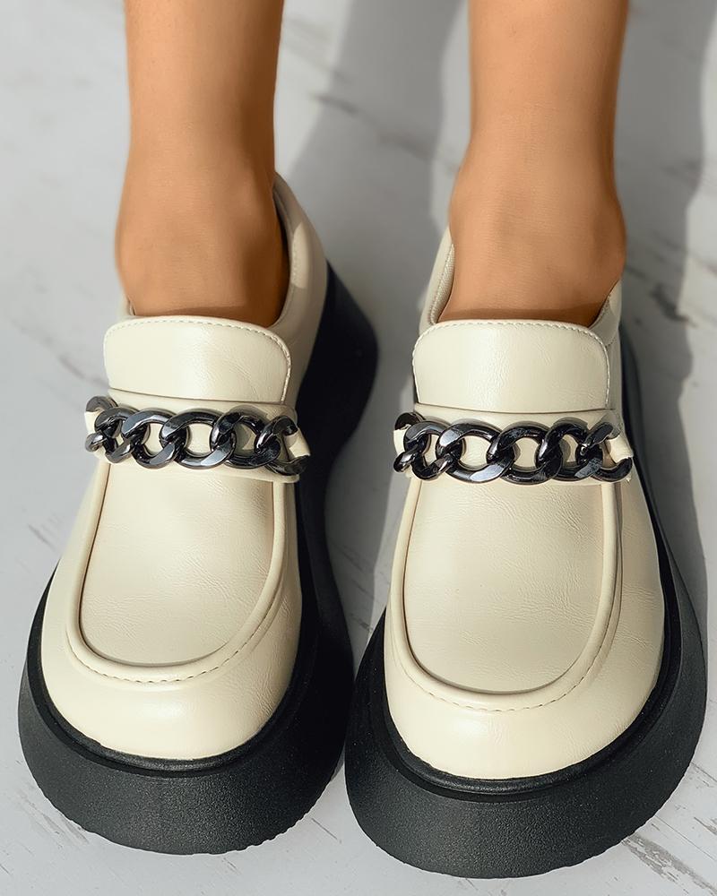 Chain Strap Flatform Slip On Shoes, Beige