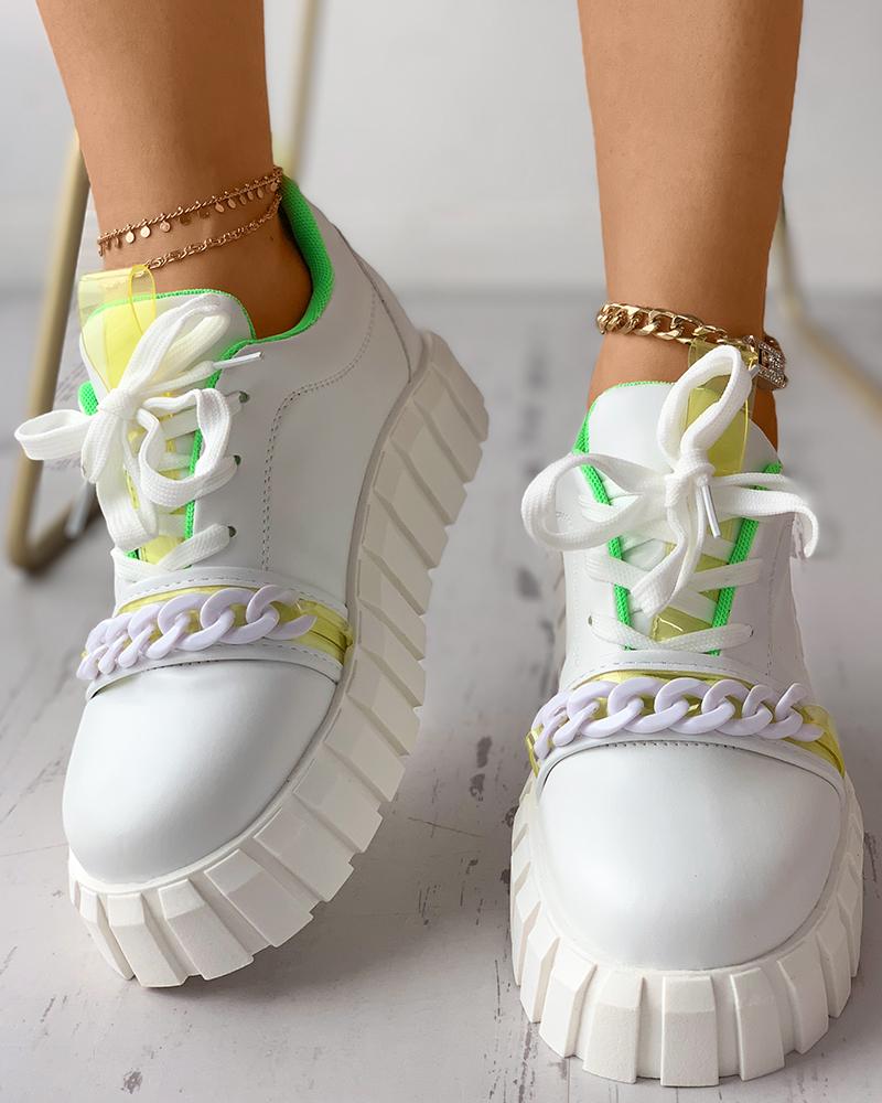 Chain Strap Lace-up Front Flatform Sneaker, Green