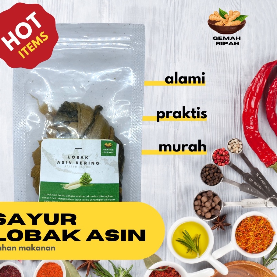 Gemah Ripah merupakan toko retail yang menyediakan bumbu serta bahan makanan lainnya yang tepat dijadikan teman memasak Ibu di dapur. Salah satunya adalah Sayur Lobak Asin ini selain sangat banyak kebermanfaatannya dengan tubuh kita, citarasa yang khas nya membuat makanan menjadi lebih nikmat. Banyak kita jumpai olahan bahan makanan tersebut dalam komersial pasar.