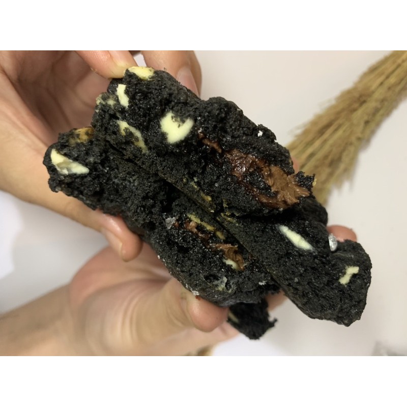Black Chewy Charcoal Cookie with White Choco Chip and Nutella Filling