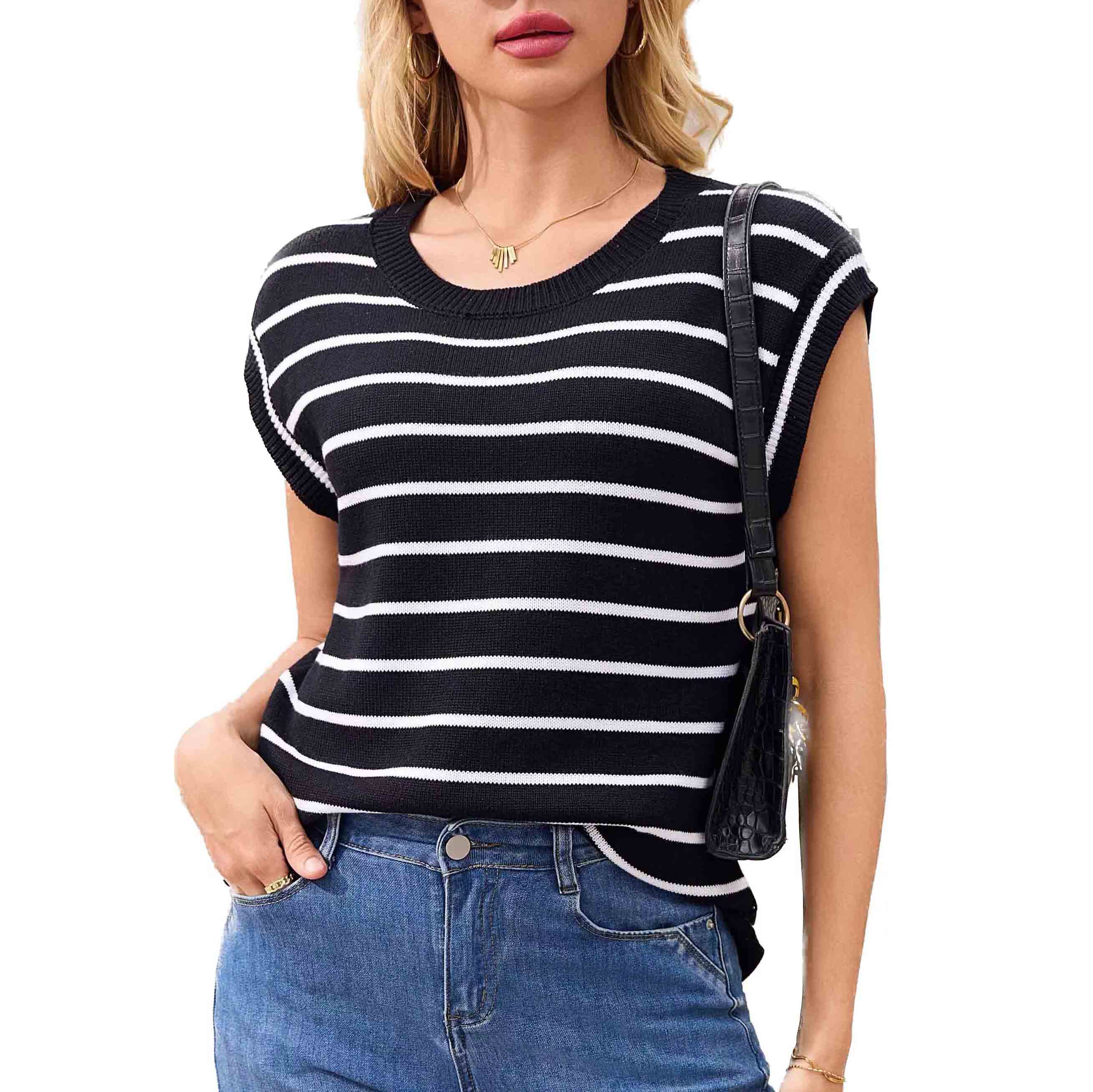 Charmleaks Женский свитер-жилет с воротником-стойкой, свободные свитера, безрукавки, повседневные трикотажные хлопковые майки с короткими рукавами L чёрный