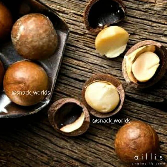 macadamia dg kulit yg menjamin kacang ini tetap garing dan renyah.