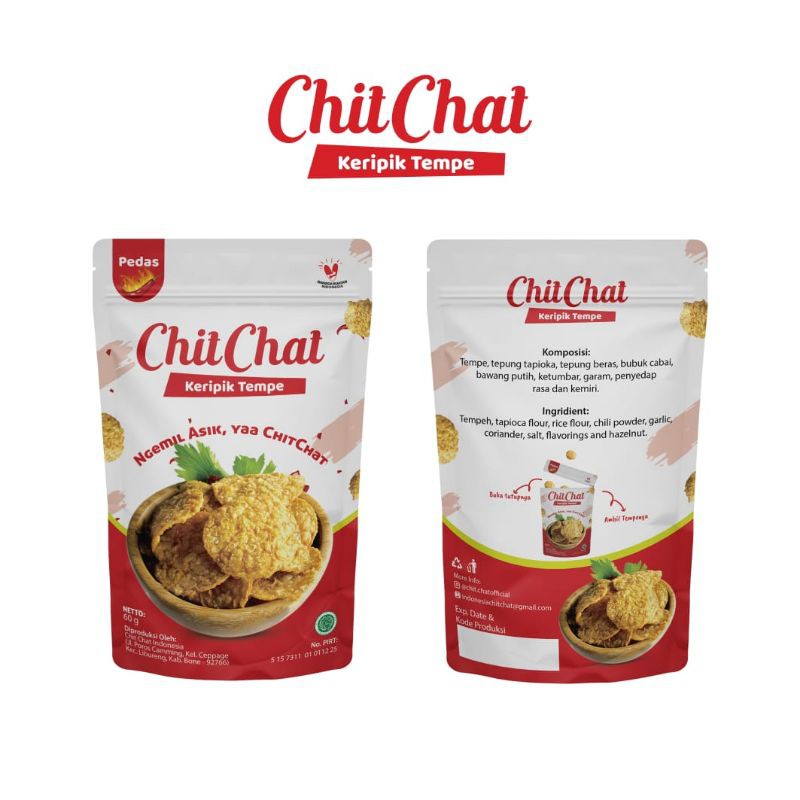 Chat KChiteripik Tempe Rasa Pedas adalah cemilan yang terbuat dari tempe kualitas terbaik dengan tambahan bumbu cabai bubuk menambah cita rasa pedas, Chit Chat keripik tempe sangan cocok dijadikan cemilan sehat dan lauk saat makan. Dilengkapi dengan izin edar PIRT dan sertifikat halal MUI.