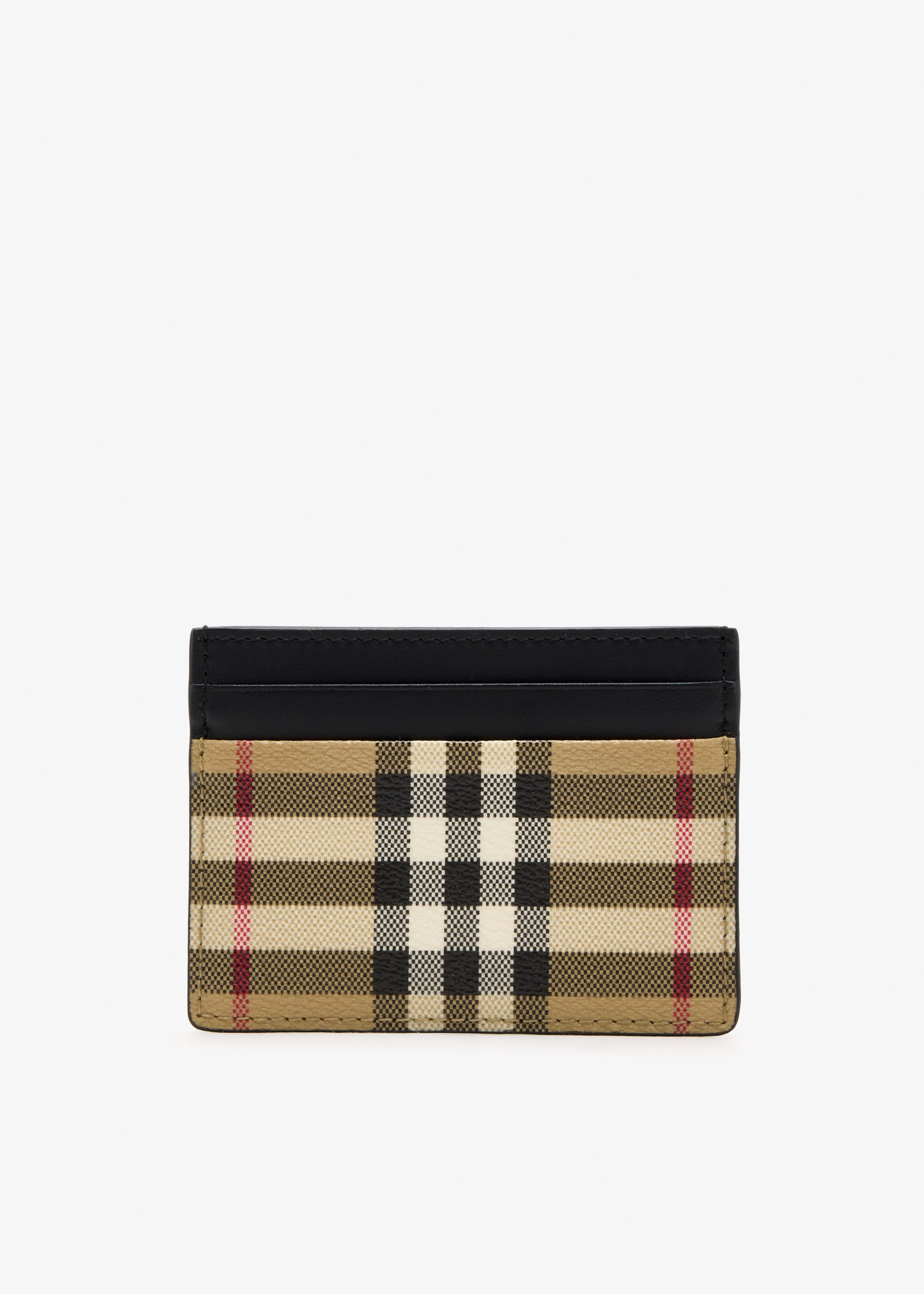 Crafted from the iconic Burberry Check canvas, this handy accessory is decorated with smooth calf leather trims. Fitted with four card slots and a slip compartment, this piece is a practical investment for organizing your cards.