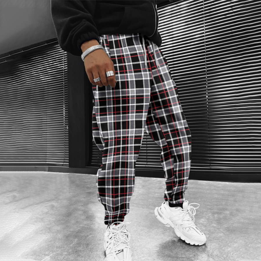 casual pants,check stripe texture air layer track pants
