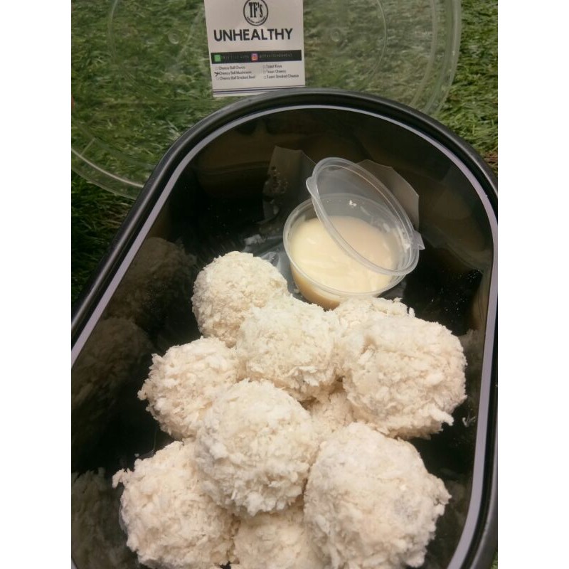 Cemilan Berbentuk Bola Kejudegan isi Jamur Dan Keju mozzarella didalamnya