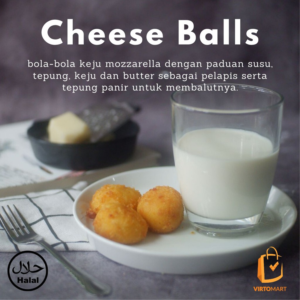 bola-bola keju mozzarella dengan paduan susu, tepung, keju dan butter sebagai pelapis. Dibalut dengan tepung crunchy.