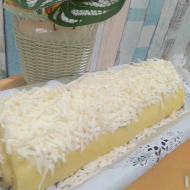 Bolu gulung lembut dengan toping dan isian full keju, yang rasanya cheesy banged karena penuh dengan balutan keju