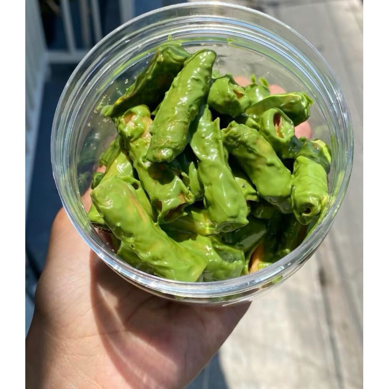 Nikmati sensasi unik dari Cheese Roll! Camilan berbentuk cabai hijau besar yang diisi dengan kejutan keju di dalamnya, lalu dilapisi glaze spesial yang manis dan gurih. Cocok untuk pecinta makanan manis ✨