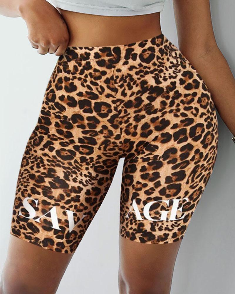 Cheetah Letter Print High-Rise Biker Shorts, Leopard