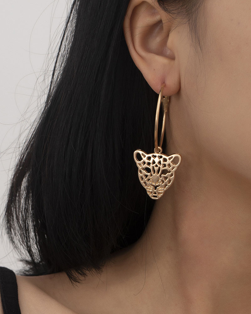 Cheetah Pattern O-ring Drop Earring, Gold