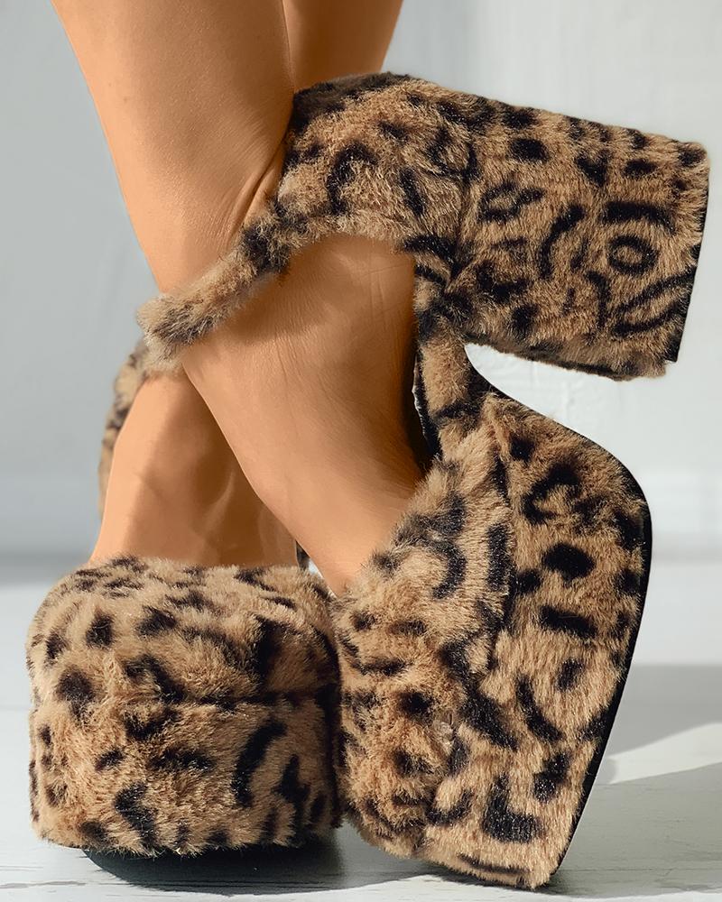 Cheetah Print Fluffy Chunky Heels, Leopard