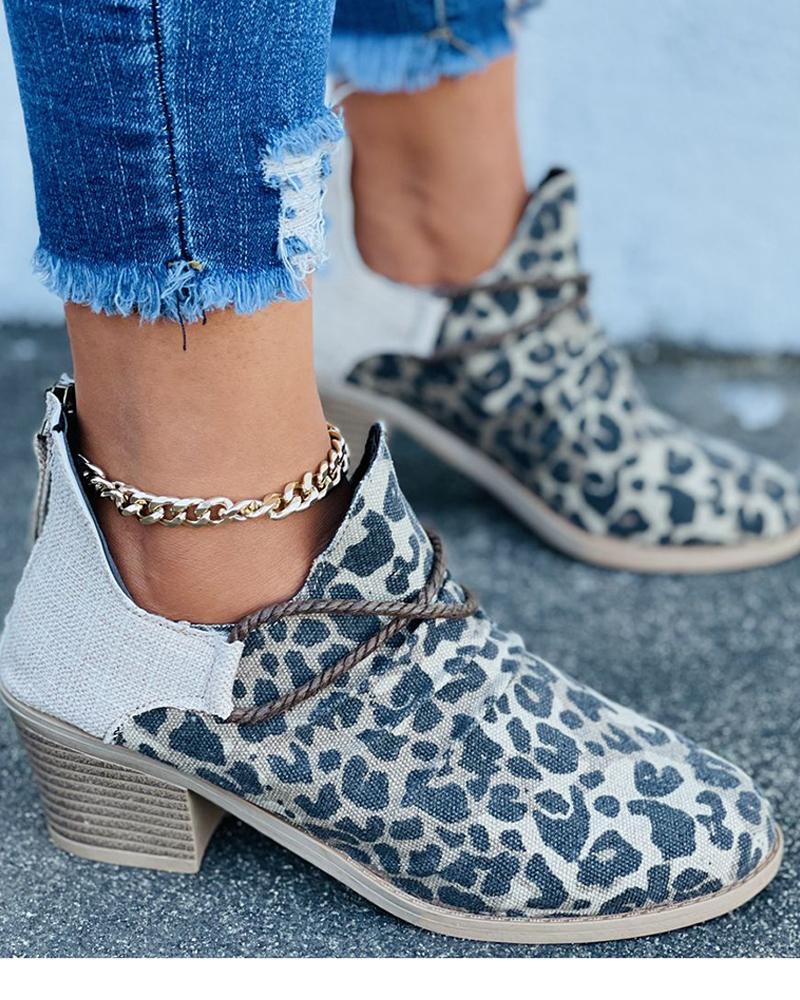 Cheetah Print Zip Back Chunky Boots, Leopard