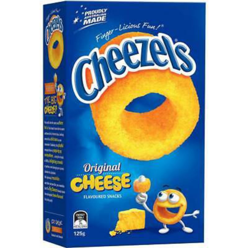 The famous cheesy, ring-shaped snack with the finger-sized hole is sure to put a smile on everyone's face! Baked to crispy, crunchy perfection and smothered with deliciously cheesy flavour, pop them on your fingers and eat them one-by-one for some Finger-licious Fun! Cheezels are Australian made and gluten free.