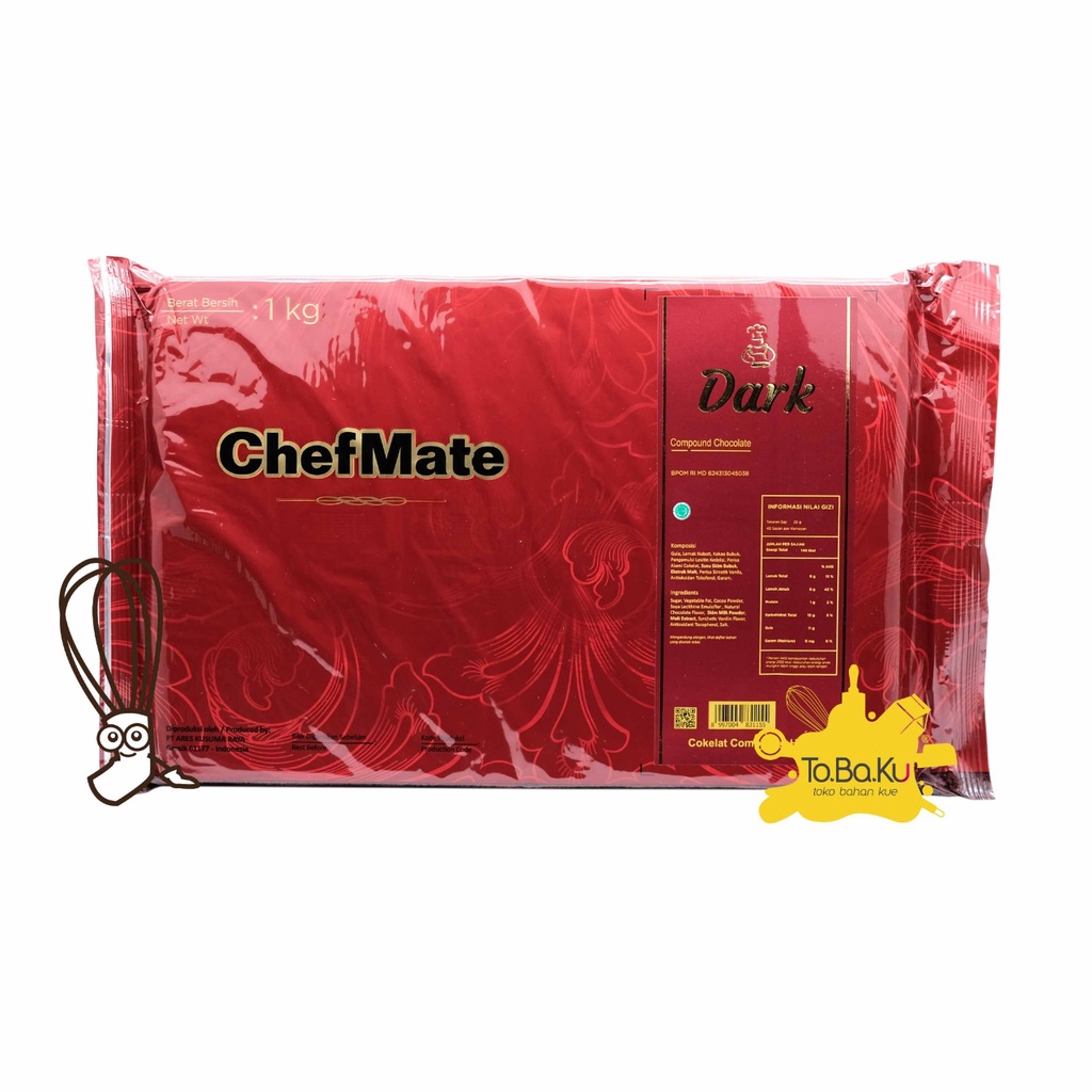 Chefmate Dark Chocolate Compound 1kg Cokelat Baking Bahan Kue Cake Cokelat Compound Blok.