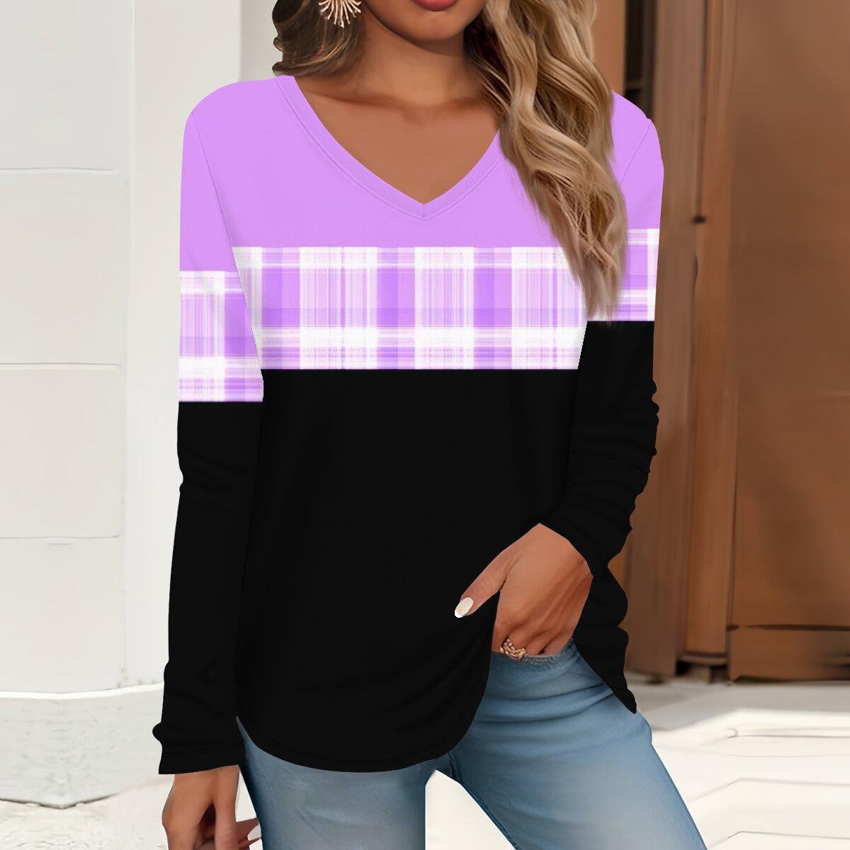 2023 весна и осень новая мода с длинным рукавом повседневная футболка с v-образным вырезом и принтом