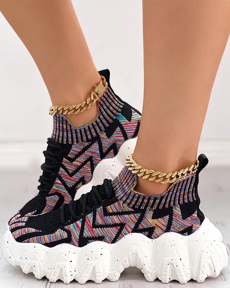 Chevron Pattern Breathable Lace-up Sneakers, Multicolor