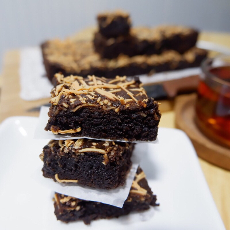 Dibuat hanya dengan bahan premium berkualitas. Browniesnya lembut, wangi, dan manisnya pas. Cocok disajikan bersama kopi atau teh.