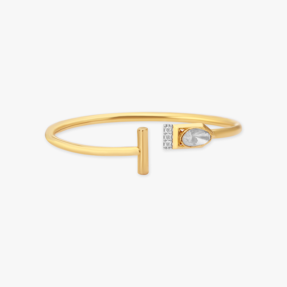 Experience the essence of contemporary elegance with this geometric design 18 Karat yellow gold Bangle, accented with Diamonds and Polki Diamonds. | TANISHQ