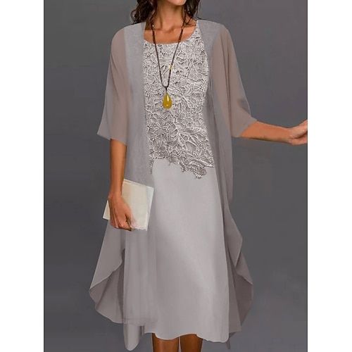 Y2k Spring Summer New Women's Solid Color Dress Crewneck Mid-sleeve Mid-length Pencil Skirt A Striped English Dress