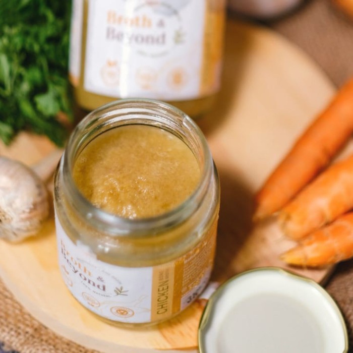 Broth & Beyond dibuat dari ayam kampung organik serta sayur2an organik. Di slow cooked dengan suhu rendah selama 24 jam menggunakan medical grade 316Titanium pan, dan dikemas dengan jar kaca yang telah meleti proses steril terlebih dahulu.
