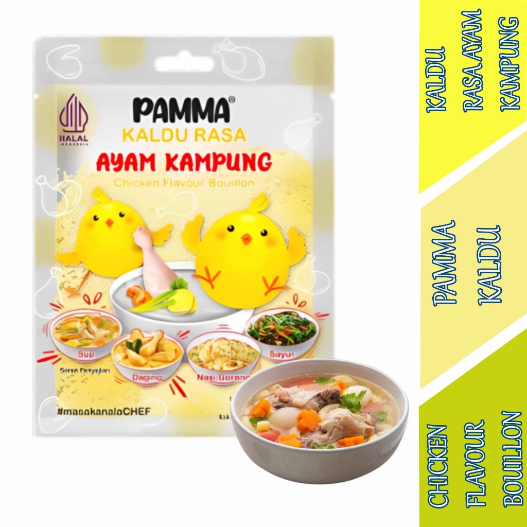 Pamma Kaldu adalah produk bumbu instan yang dirancang untuk menambahkan cita rasa ayam kampung pada berbagai hidangan.Bisa digunakan untuk masakan berkuah, gorengan, tumisan, atau marinasi daging dan ayam.Diproduksi dengan standar yang memastikan rasa dan aroma tetap terjaga.