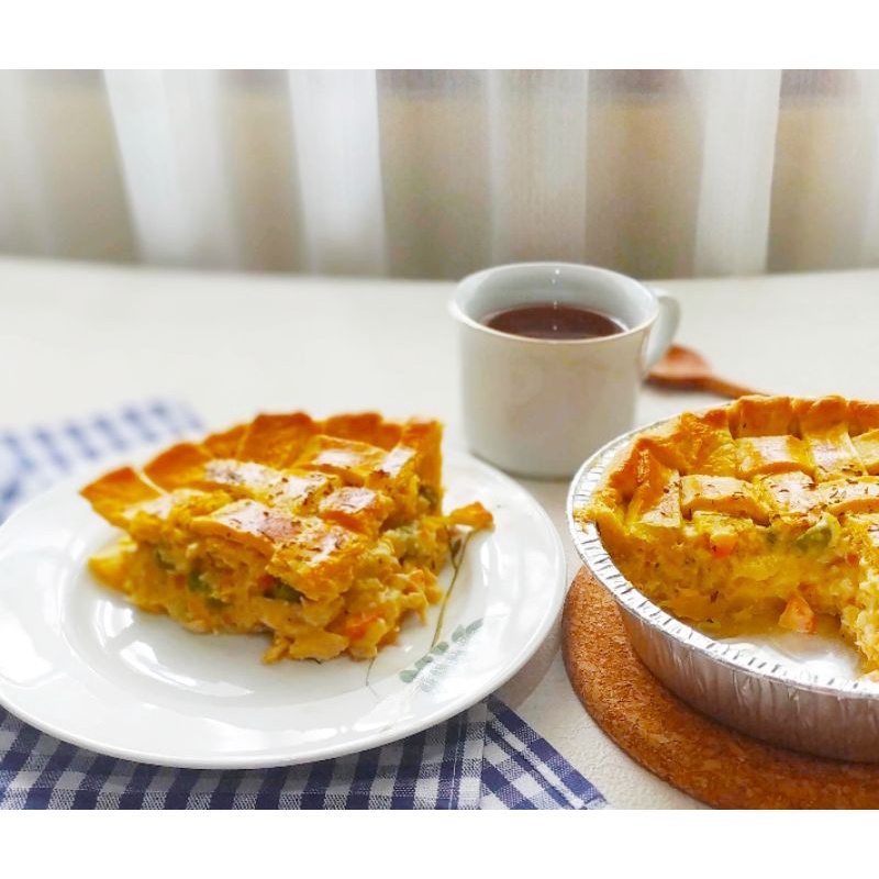 Chicken Pot pie dengan isian daging ayam, kacang polong dan wotel dengan rasa yg creamy dan nikmati sensasi crunchy dari pienya..