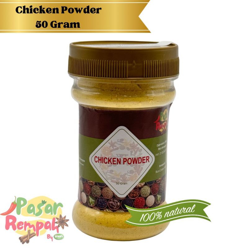 Chicken Powder atau Ekstrak Ayam untuk Ditambahkan ke adonan tepung agar aroma ayam semakin kuat. Sering Ditambahkan pada adonan Sop atau kuah sebagai kaldunya. Dikemas dengan hygienis.
